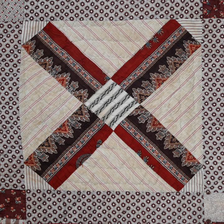 the bed. The amazing array of fabrics date from C.1840 to C 1850. This