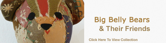 Over the years our Big Belly Bears have been a popular item at our York, Maine gallery and have found homes all over the world. Due to popular request we are now offering them through our online gallery. Now also available are some of their stuffed animal friends made from antique and vintage quilts and coverlets.