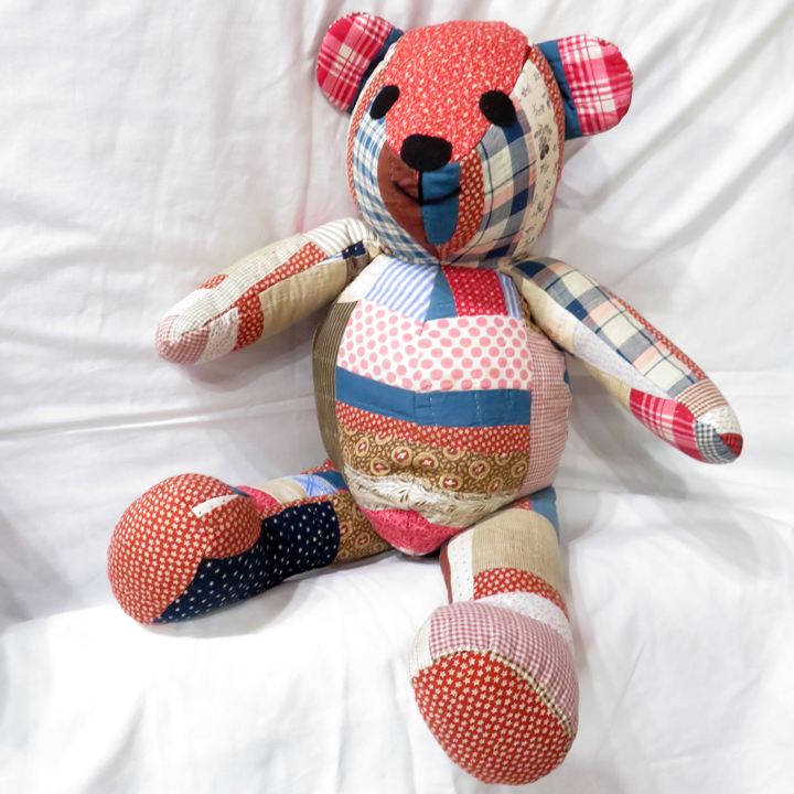 Over the years Betsey has purchased many wonderful antique and vintage textiles that were cherished and over-loved well beyond their original use as bed quilt or coverlet. At Rocky Mountain Quilts we have taken the still perfect parts and pieces of each of these textiles to be reborn into a new life as a big-bellied stuffed bear. Some are just right as lovable, huggable bears perfect for newborns and very young children. Others will begin their second life as a cherished friend or as a decorative accent in your home. We have a wide variety of one-of-a-kind bears and our stock is ever changing so there is sure to be one for you, or to give as a special gift.