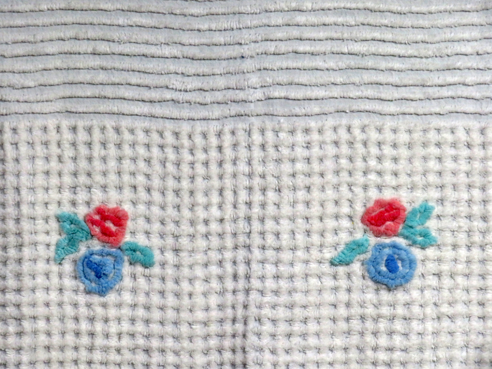 A luscious light weight crib or youth bed size cotton chenille blanket. Perfect for the summer, light and airy.