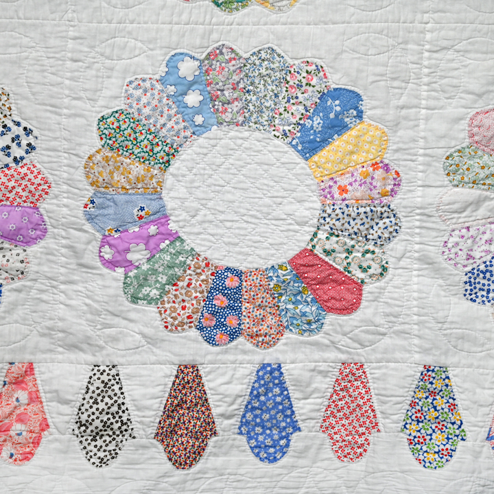 Dresden Plate blocks each measuring 16-1/2" square. There are 20 petals