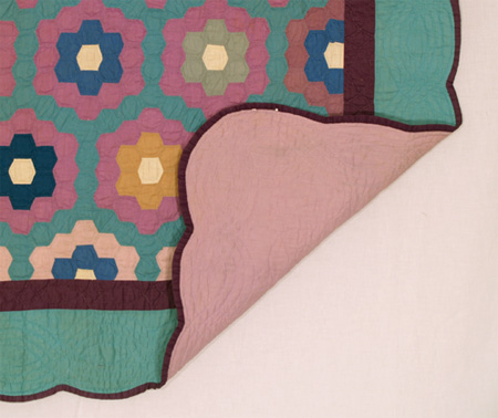 This is a lovely diminutive example of the Grandmother’s Flower Garden pattern and would be a wonderful addition to any collection. For use in that special crib or as art for your wall. This quilt has been professionally hand washed by Betsey and is ready to send to you on approval for review in the privacy of your home.