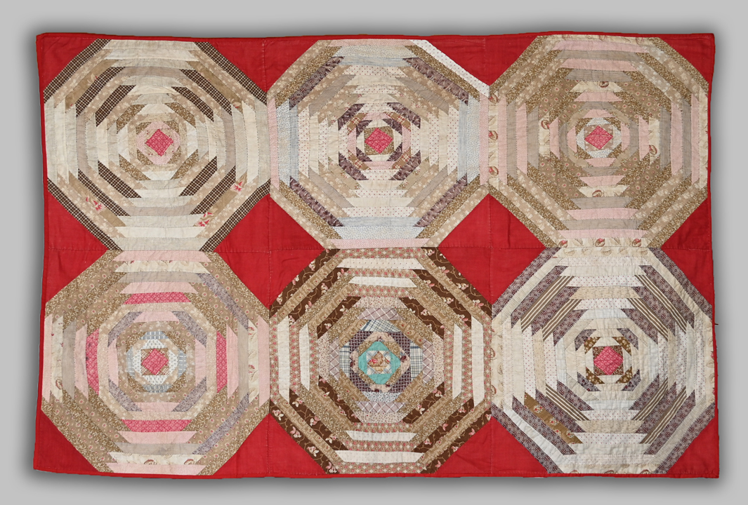 The fabrics are Turkey Red and dozens of 1870's era calicos. The "logs"
