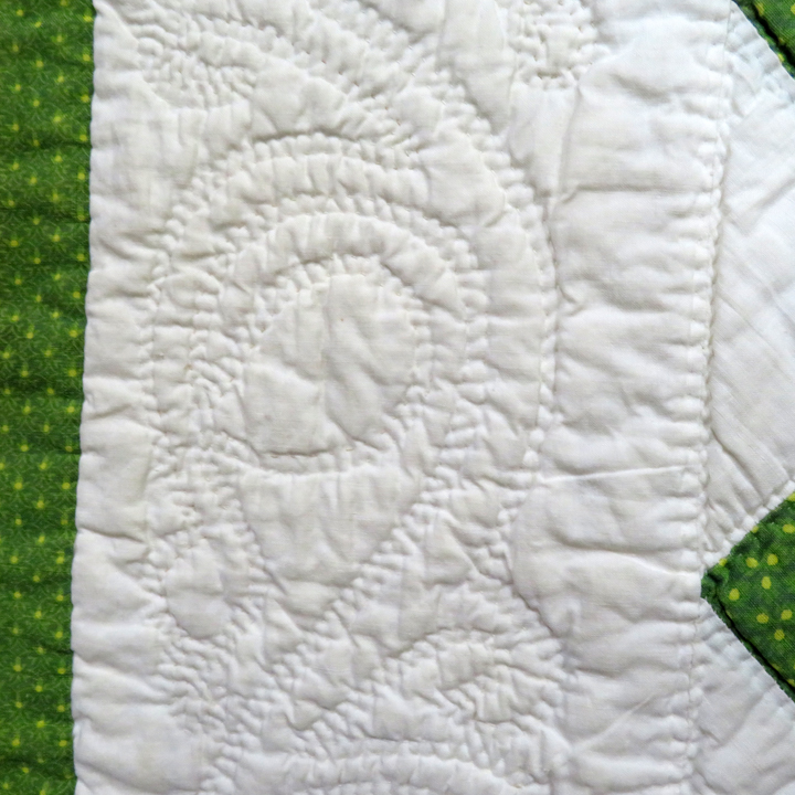 section heavily quilted in a wave pattern and finished with a matching overdyed green calico inner Streak of Lightning.