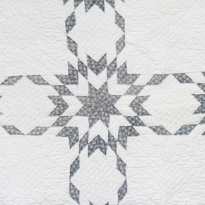 This wonderfully graphic quilt is executed in the much loved Touching Stars pattern.