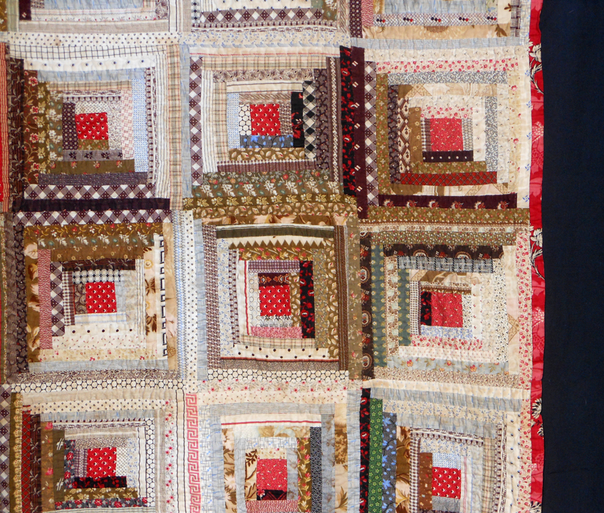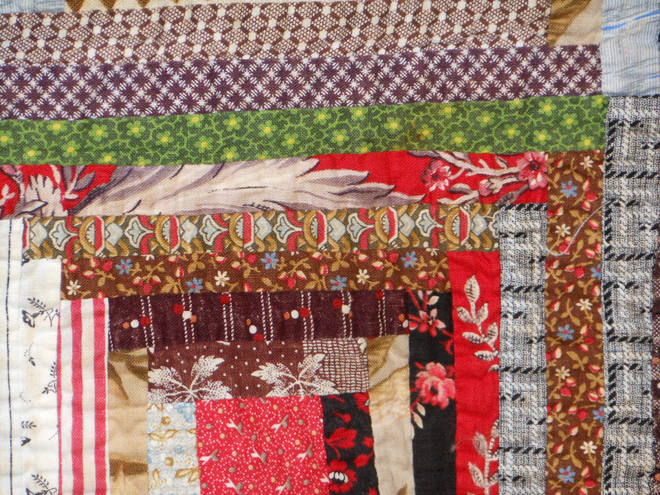 This wonderful youth size quilt is completely pieced by hand using a foundation method used only in New England. It has Turkey red center chimneys, 1/2 inch wide logs, 1-3/8 inch center chimneys and a 1/2 inch binding. It is in original perfect hardly used condition.