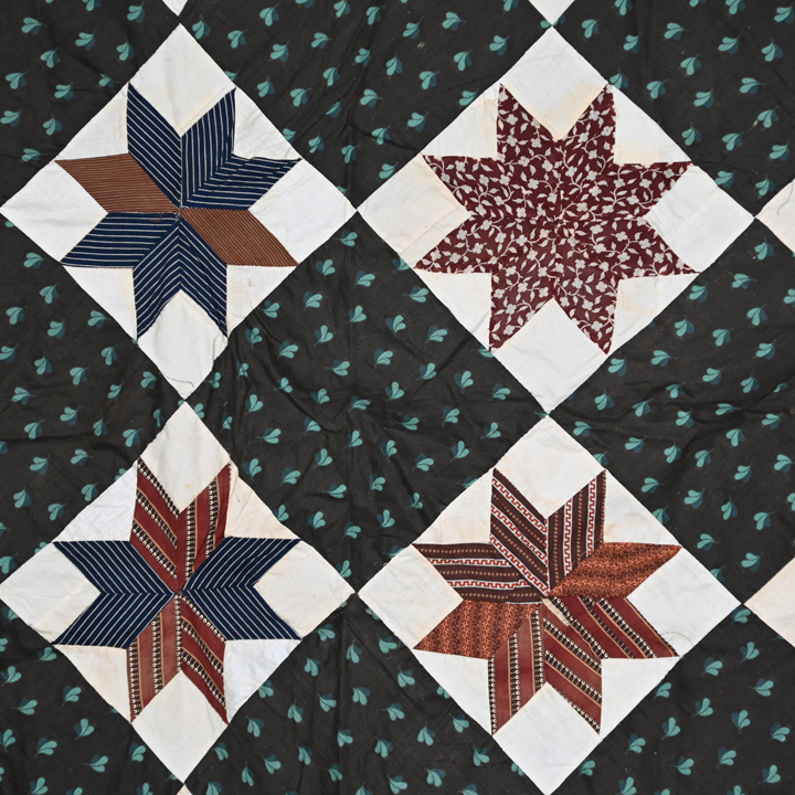 The pieced Ohio Star blocks, on point, measure 7" X 7". The joining